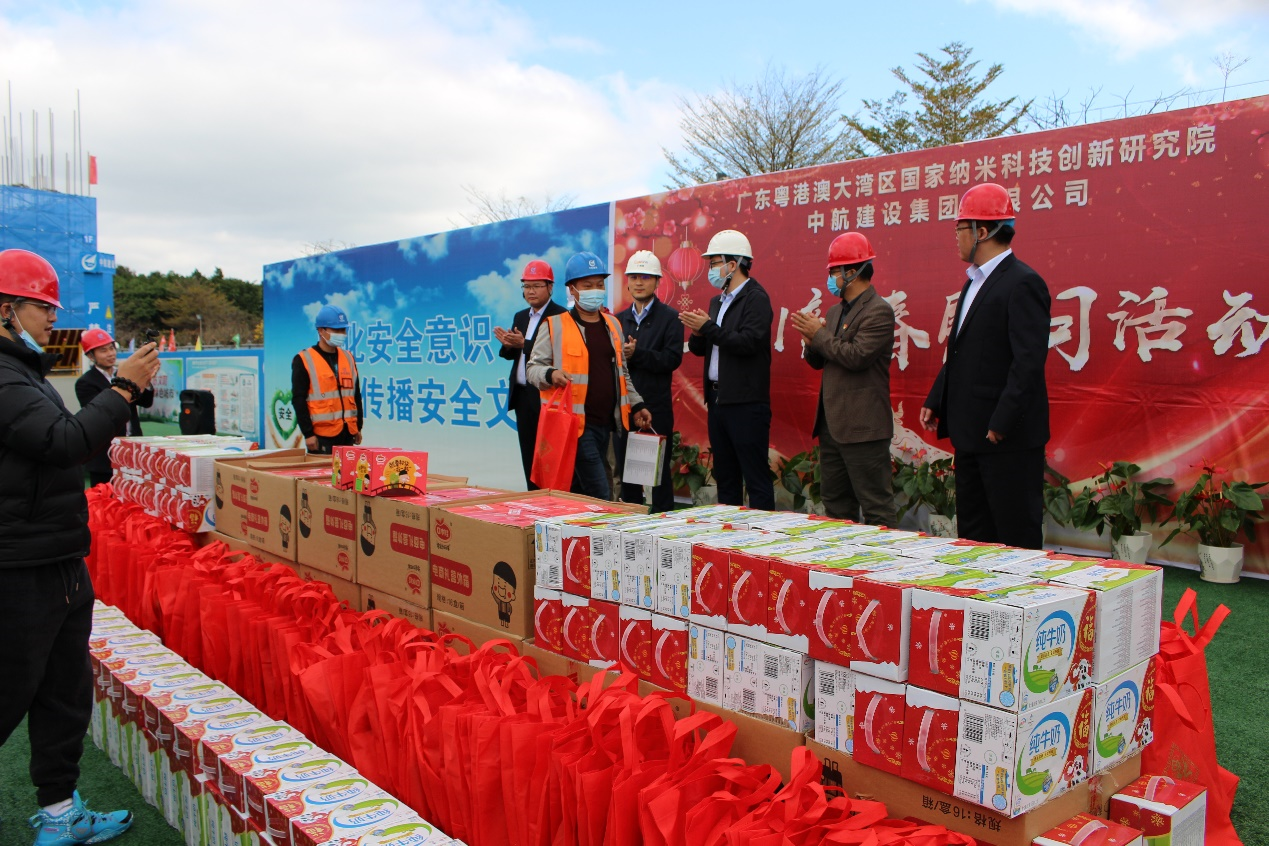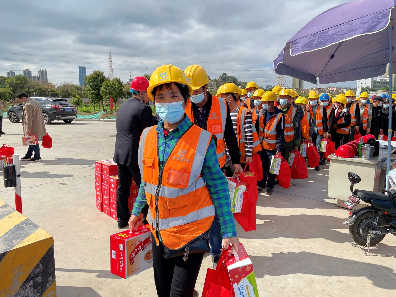 大年三十闹新春,生产一线迎新年。为响应地方政府“留穗过年”的号召,2021年2月11日,球盟会体育-球盟会体育·(中国)官方网站南方工程有限公司联合广州市黄埔区鱼珠街道办事处、广州纳米产业投资有限公司、广州珠江工程建设监理有限公司,组织开展“2021新春慰问活动”。