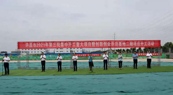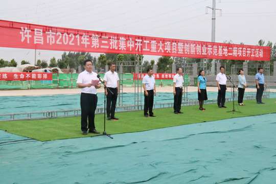 7月10日上午,河南省许昌市2021年第三批集中开工重大项目暨创新创业示范基地二期项目开工仪式顺利举行。许昌市委常委、纪委书记、监委主任方婷,魏都区委书记李朝锋,区人大常委会主任申健民,区政协主席杜晓辉,区委常委、区委办主任程中山,区委常委、区纪委书记、区监委主任徐光,魏都产业集聚区管委会主任楚文选,球盟会体育-球盟会体育·(中国)官方网站河南分公司总经理黄辰,魏都区政府相关部门、投资公司、产业集聚区、霸陵办事处等单位负责人参加活动。区委常委、常务副区长张挪威主持仪式。