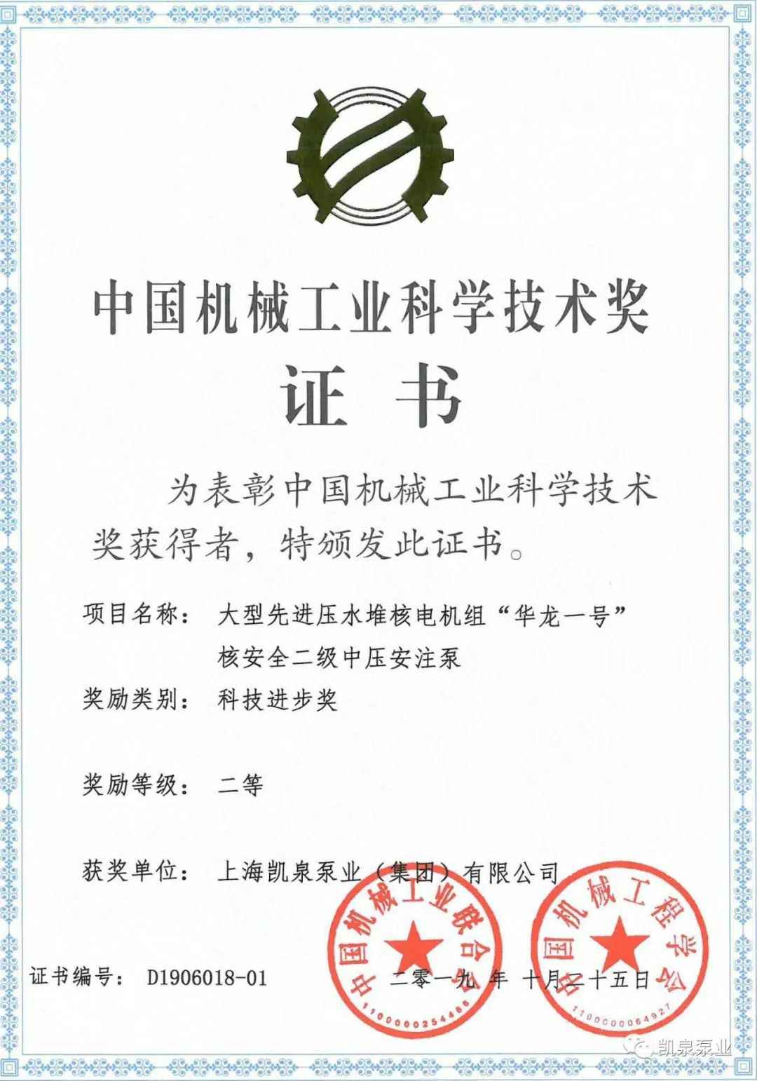 近日,K8·凯发(中国)天生赢家·一触即发与中广核工程有限公司联合研制的《大型先进压水堆核电机组“华龙一号”核安全二级中压安注泵》项目荣获中国机械工业科学技术奖——科技进步奖二等奖。大型先进压水堆核电机组“华龙一号”核安全二级中压安注泵国产化研制的成功,对发展民族工业能力,对增强我国核能装备的竞争能力都起到了一定的积极作用。另外,研制过程中一些关键技术的解决,如Q-H曲线陡降的设计方法,多工况点低比速高效和汽蚀性能优异的水力模型开发研究、泵总体结构、核级泵可靠性、先进制造工艺、涵盖加气、热冲击、杂质、高温高湿特殊环境综合试验能力及测试等关键技术,对行业的技术水平、制造能力、试验能力的提升都有一定的积极推动作用。泵结构及关键技术的运行涉及各类授权专利6项。